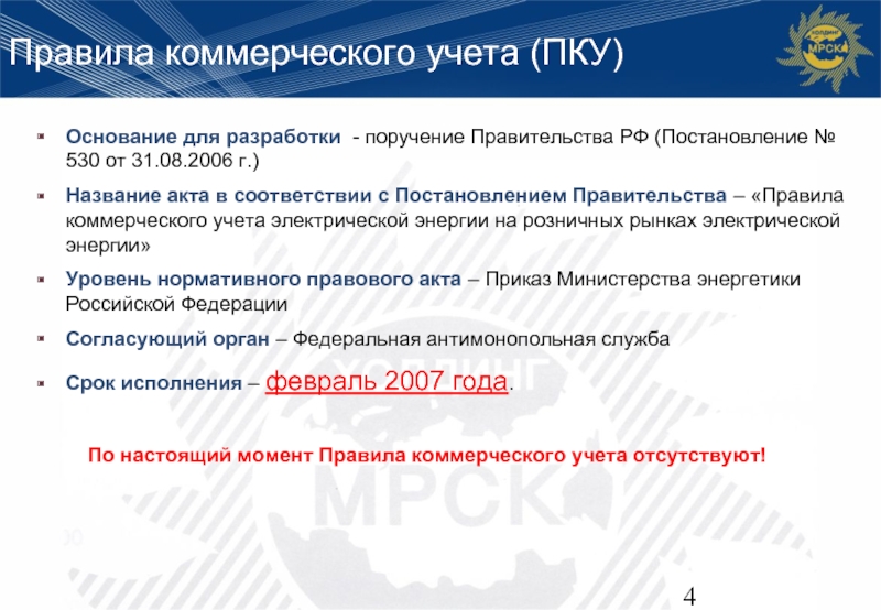 По настоящий момент Правила коммерческого учета отсутствуют!