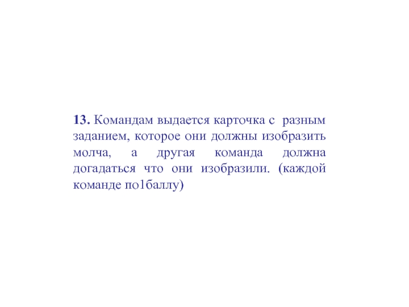 Слайд 1613. Командам выдается карточка с разным заданием, которое они должны изобразить