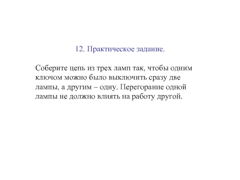 ключом можно было выключить сразу две лампы, а другим – одну. Перегорание одной лампы не должно влиять на работу другой.