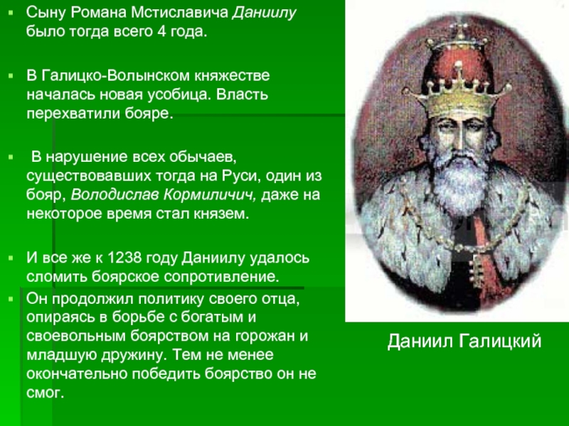 Роман Мстиславич был выдающимся полководцем и государственным деятелем. Ему на время удалось прекратить боярские усобицы. Он захватил Киев, став хозяином огромной территории. Роман проводил активную внешнюю политику.