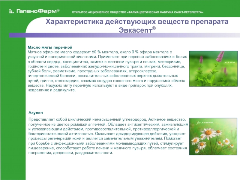 Капли на масляной основе представлены двумя наименова-ниями «Эвкасепт®», производства «Фармацевтической фабрикой Санкт-Петербурга» и «Пиносол®».