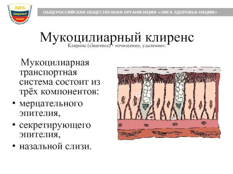 Слайд 10Мукоцилиарный клиренс