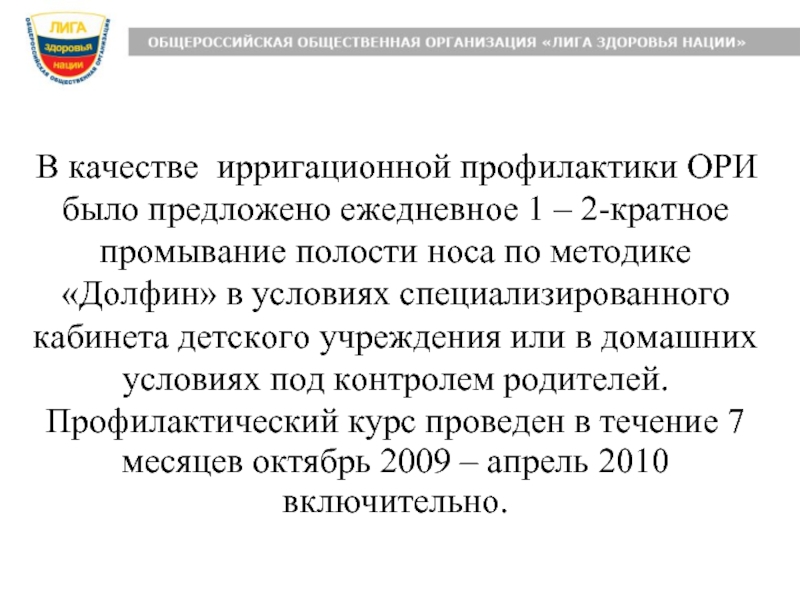 Профилактический курс проведен в течение 7 месяцев октябрь 2009 – апрель 2010 включительно.