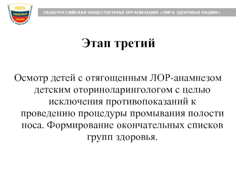 противопоказаний к проведению процедуры промывания полости носа. Формирование окончательных списков групп здоровья.