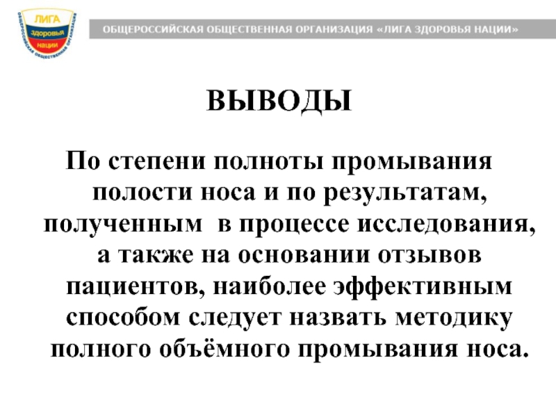 процессе исследования, а также на основании отзывов пациентов, наиболее эффективным способом следует назвать методику полного объёмного промывания носа.