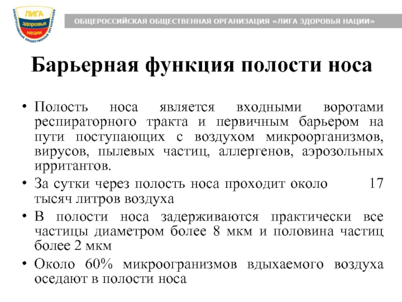 Слайд 9Барьерная функция полости носа