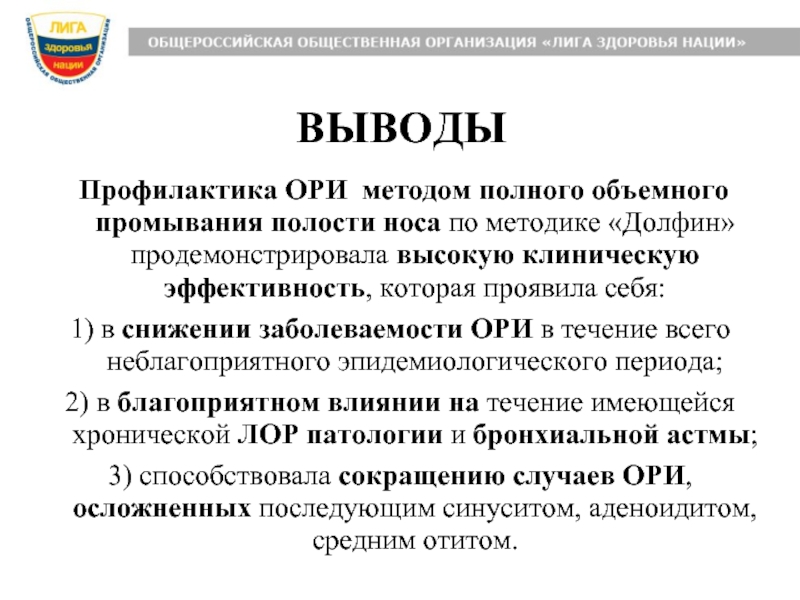 Профилактика ОРИ методом полного объемного промывания полости носа по методике