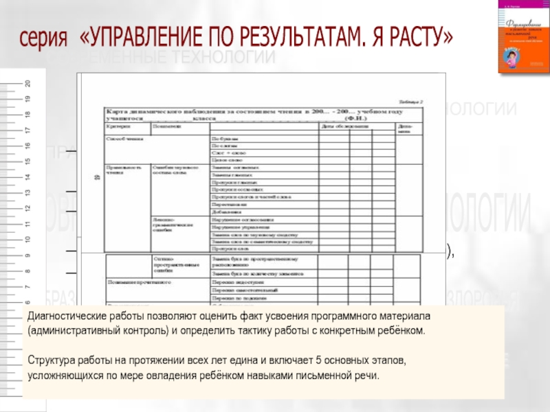Диагностические работы позволяют оценить факт усвоения программного материала (административный контроль) и определить тактику работы с конкретным ребёнком.