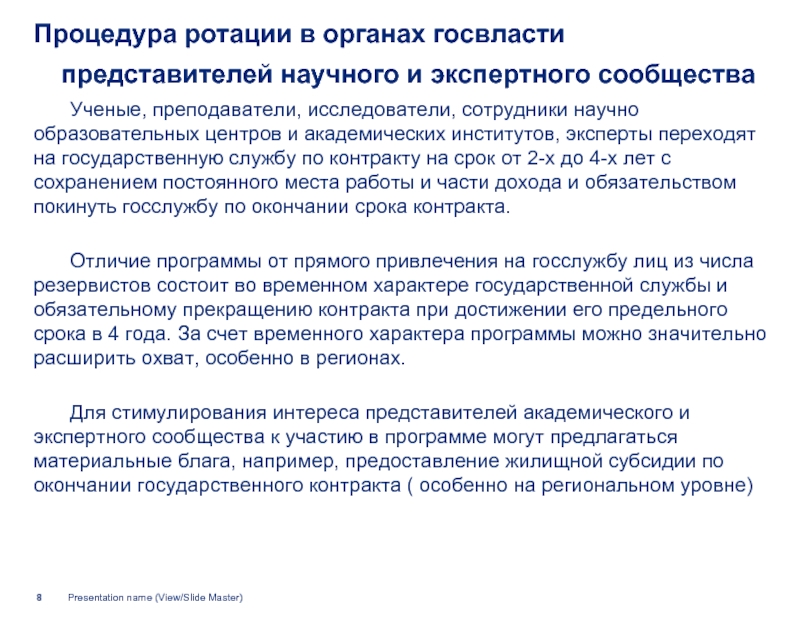 Слайд 8Процедура ротации в органах госвласти представителей научного и экспертного сообщества