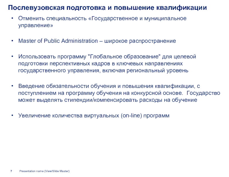 Слайд 7Послевузовская подготовка и повышение квалификации