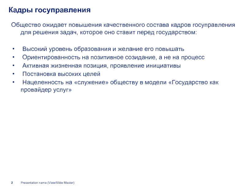 Общество ожидает повышения качественного состава кадров госуправления для решения задач,