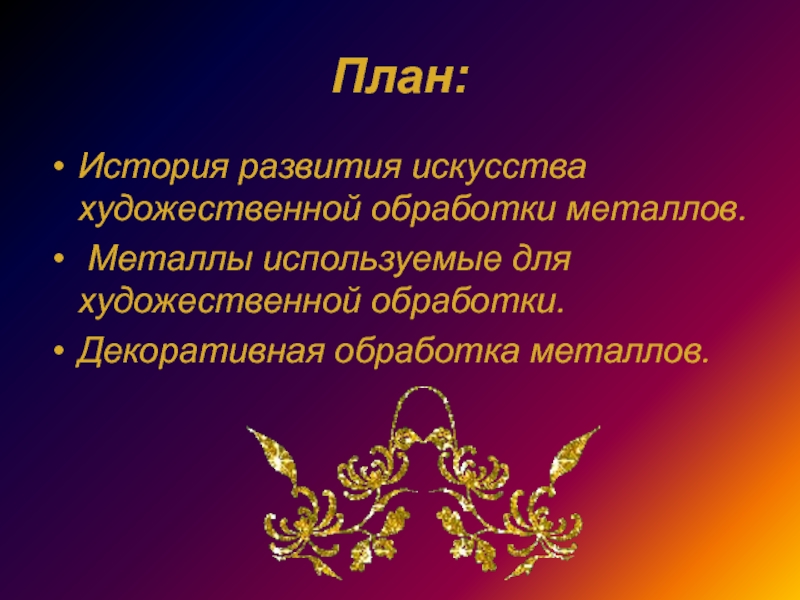 Искусство художественной обработки металлов прошло длительный путь развитии, опираясь