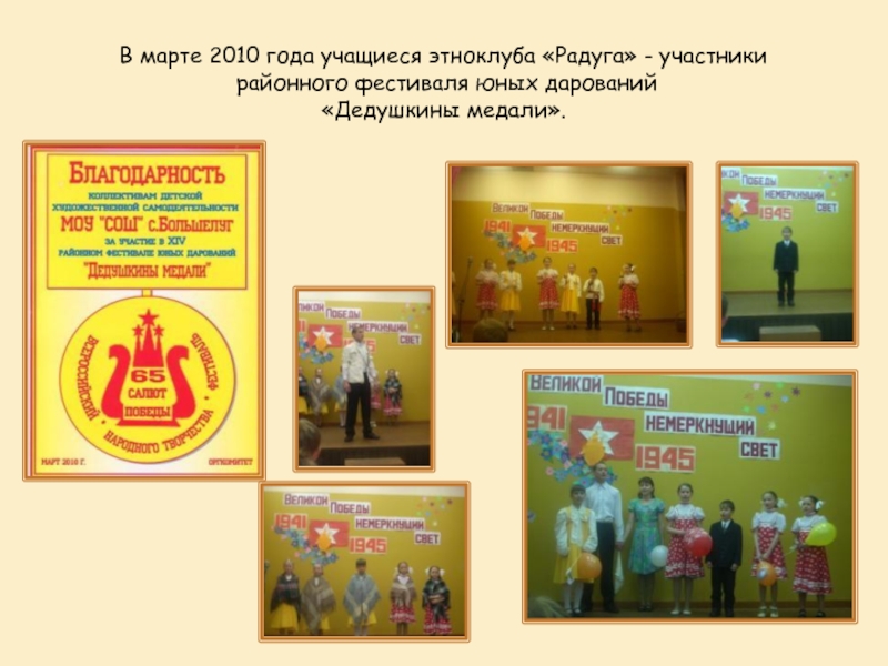 Слайд 43В марте 2010 года учащиеся этноклуба «Радуга» - участники