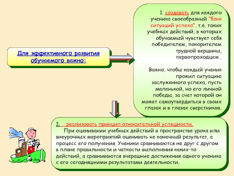 Слайд 4 1. создавать для каждого ученика своеобразный "банк ситуаций успеха",