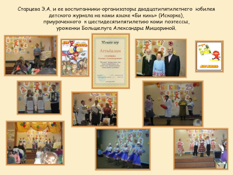 Старцева Э.А. и ее воспитанники-организаторы двадцатипятилетнего юбилея детского журнала на коми