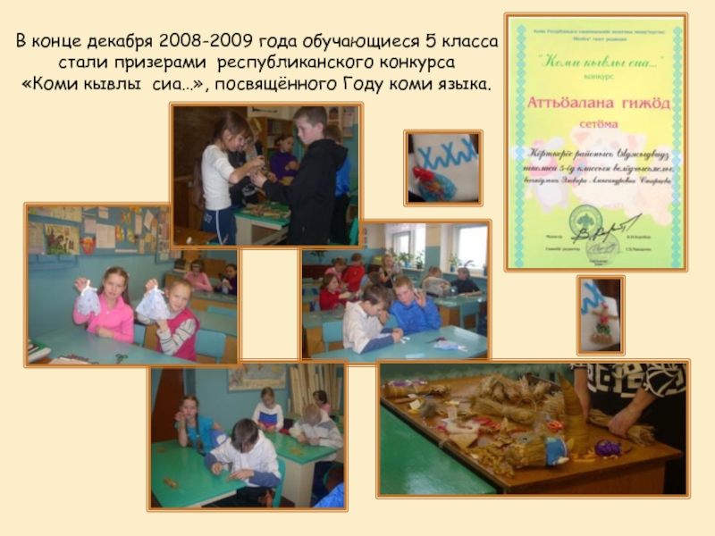 Слайд 44В конце декабря 2008-2009 года обучающиеся 5 класса стали призерами республиканского