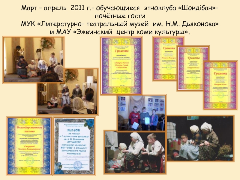 Слайд 59Март – апрель 2011 г.- обучающиеся этноклуба «Шондібан»-