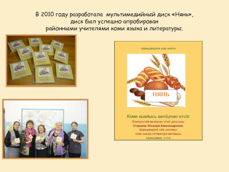 Слайд 8В 2010 году разработала мультимедийный диск «Нянь»,