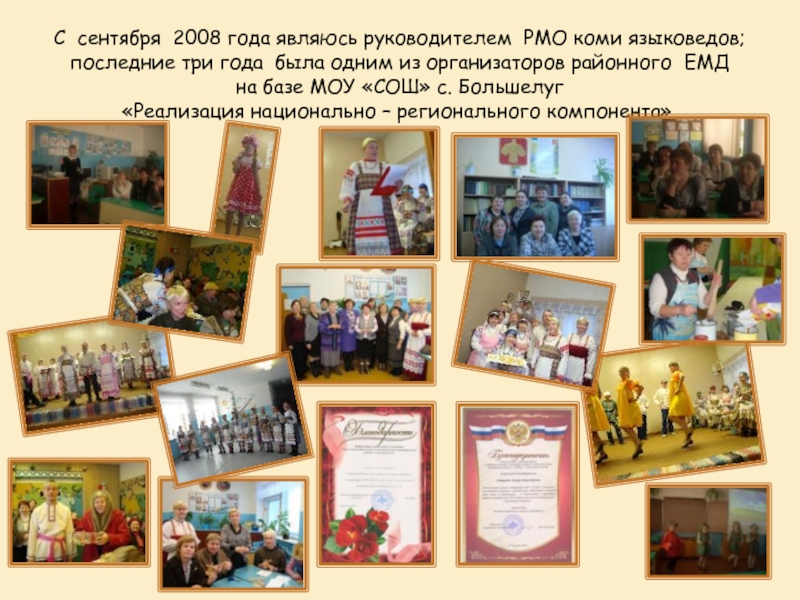 Слайд 6С сентября 2008 года являюсь руководителем РМО коми языковедов; последние три