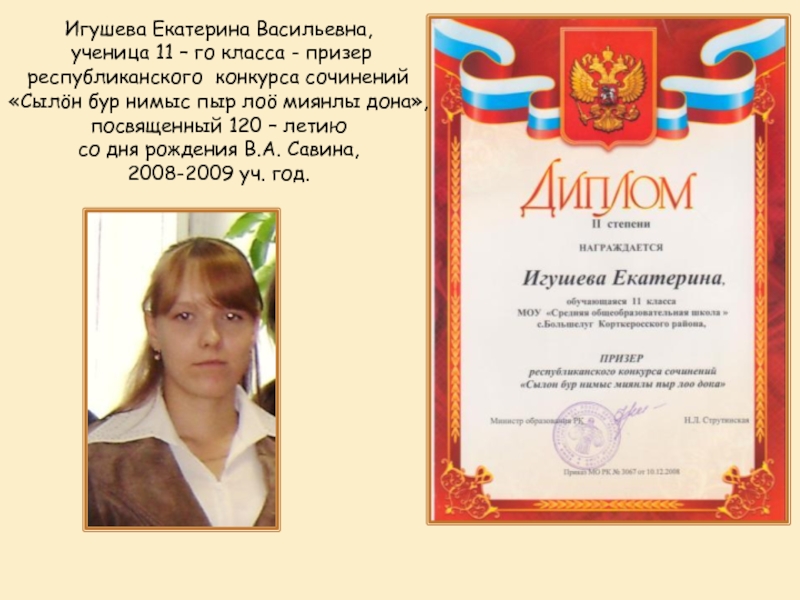 Слайд 51Макарова Юля- призёр республиканского конкурса сочинений