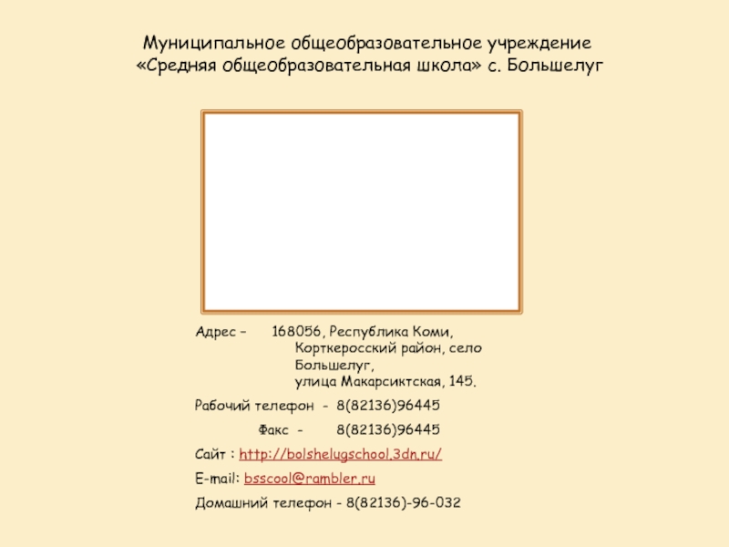 168056, Республика Коми, Корткеросский район, село Большелуг,