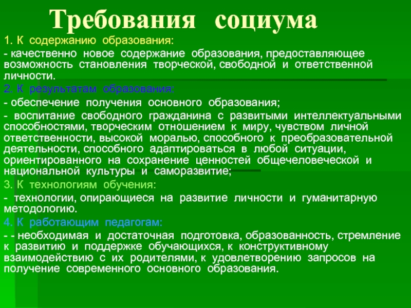 - - необходимая и достаточная подготовка, образованность, стремление к развитию и поддержке обучающихся, к конструктивному взаимодействию с их родителями, к удовлетворению запросов на получение современного основного образования.