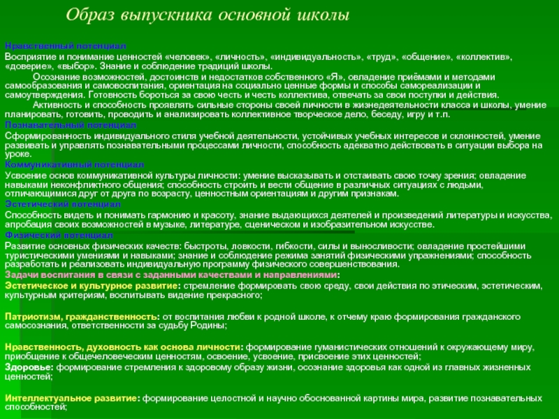 Нравственность, духовность как основа личности: формирование гуманистических отношений к окружающему миру, приобщение к общечеловеческим ценностям, освоение, усвоение, присвоение этих ценностей;