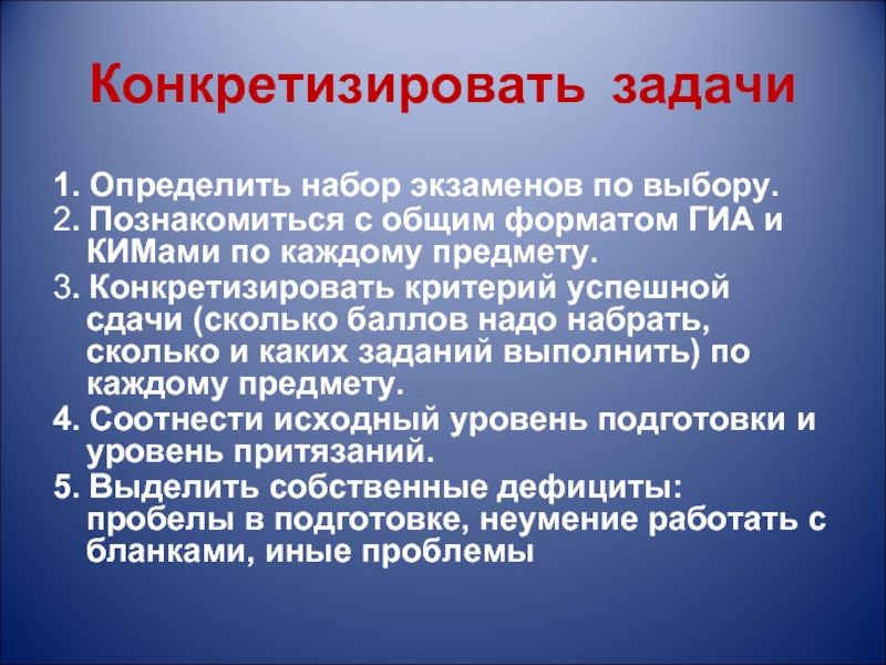 5. Выделить собственные дефициты: пробелы в подготовке, неумение работать с бланками, иные проблемы