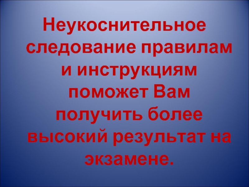 Слайд 16Неукоснительное следование правилам и инструкциям поможет Вам получить более высокий результат