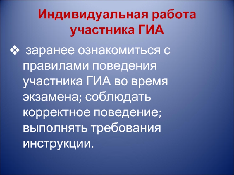 во время экзамена; соблюдать корректное поведение; выполнять требования инструкции.