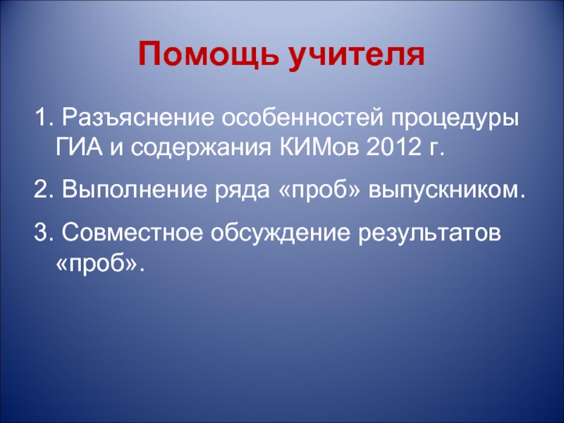 1. Разъяснение особенностей процедуры ГИА и содержания КИМов 2012 г.