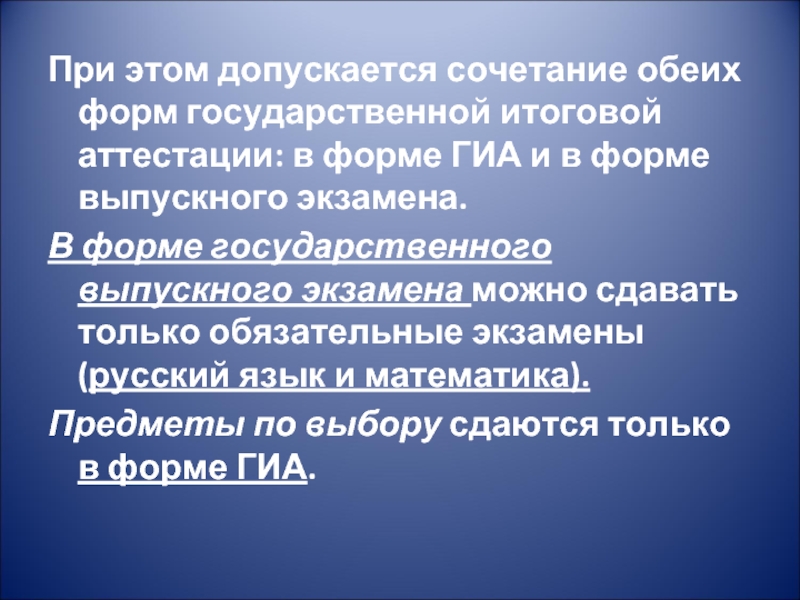 Слайд 26При этом допускается сочетание обеих форм государственной итоговой аттестации: в форме