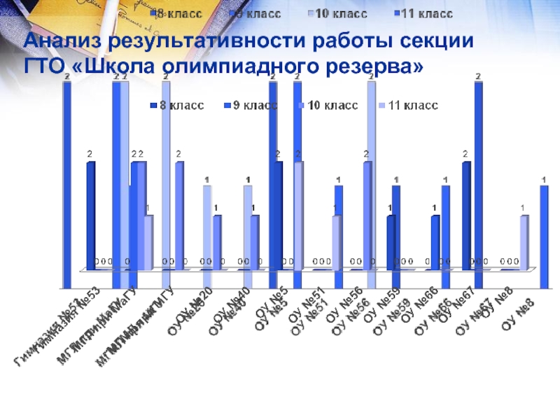 2009-2010 у.г. – ОУ №4, 13, 21, 22, 26, 27, 33, 34, 36, 37, 38, 39, 41, 60.