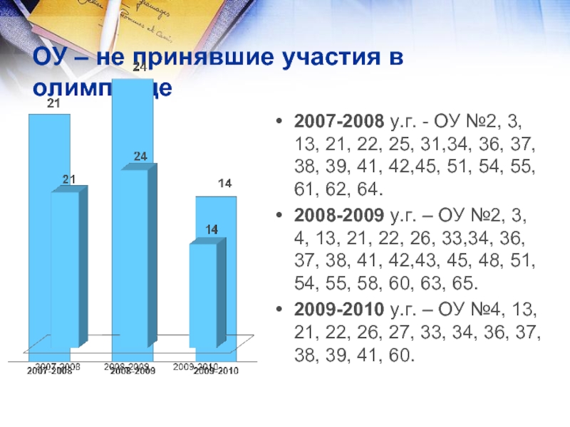 Слайд 4ОУ – не принявшие участия в олимпиаде