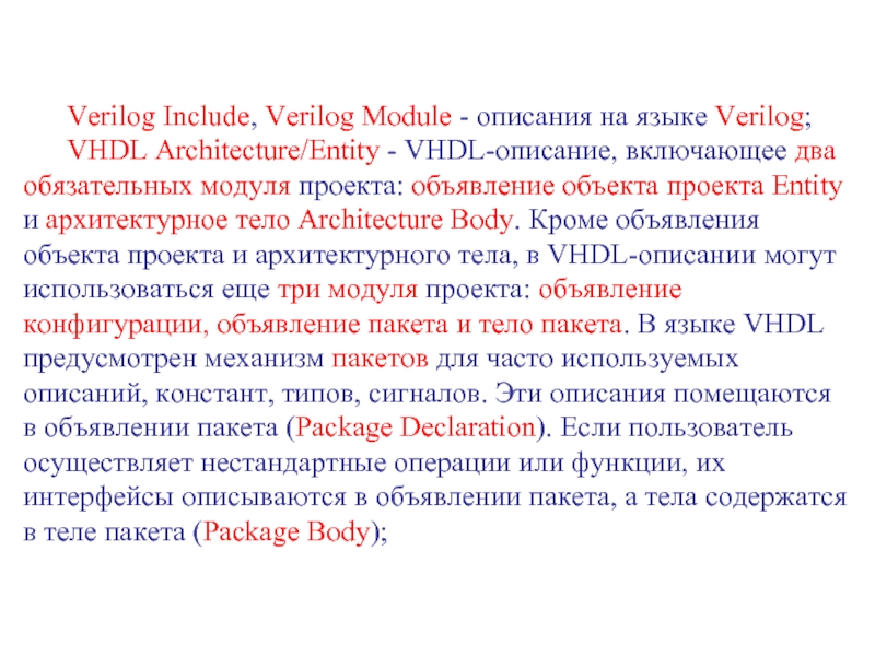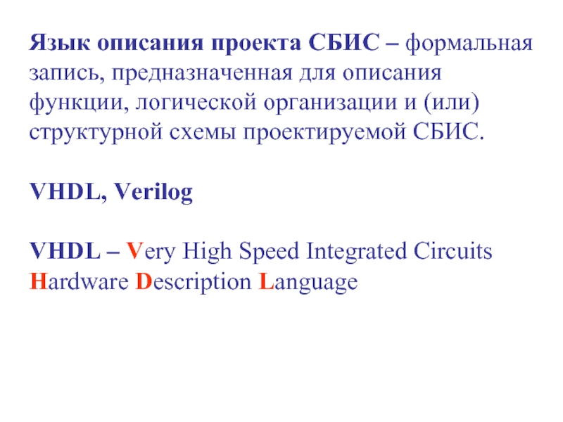 Слайд 13Язык описания проекта СБИС – формальная запись, предназначенная для описания функции,