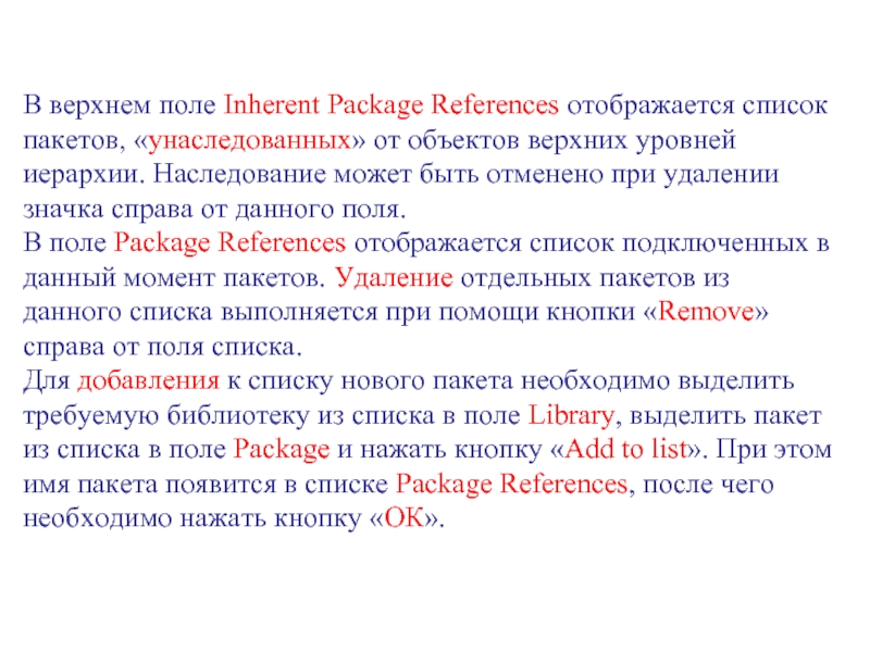 В верхнем поле Inherent Package References отображается список пакетов, «унаследованных» от