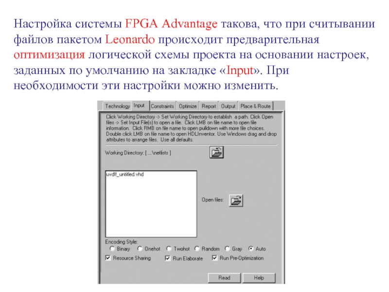 Настройка системы FPGA Advantage такова, что при считывании файлов пакетом Leonardo