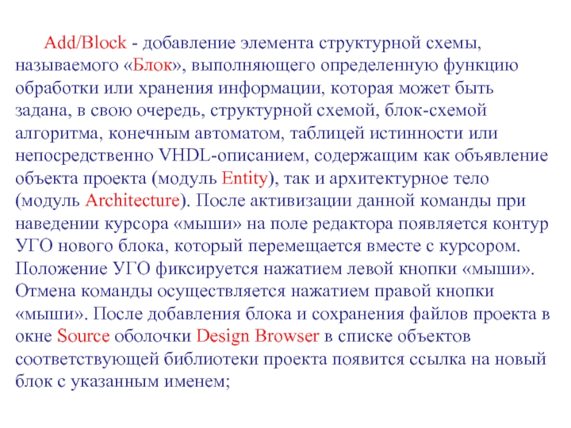 вышеперечисленных способов не было задано содержимое блоков и компонентов проекта, в конечном итоге, после автоматической генерации, проект будет представлен соответствующими VHDL-файлами.