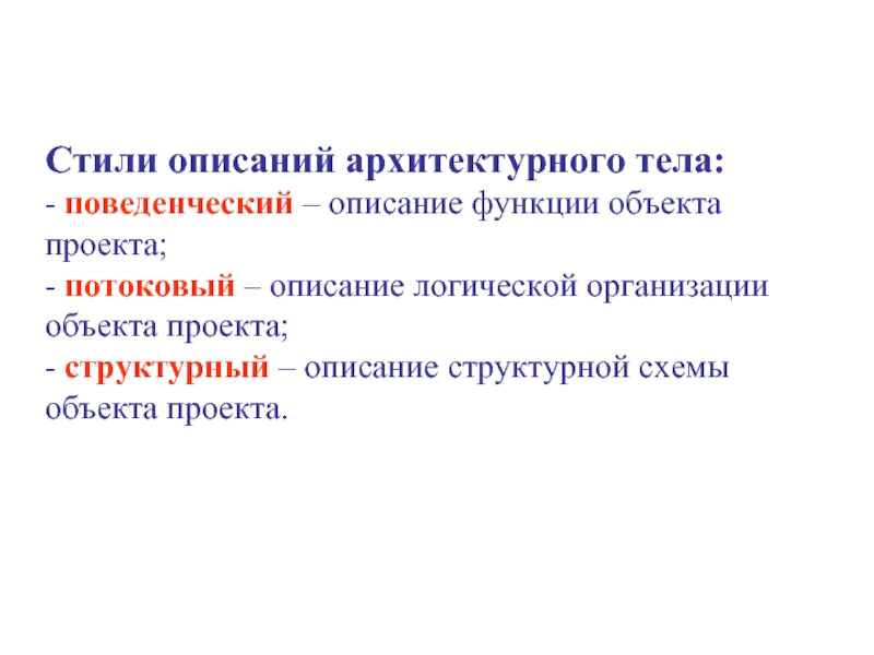 - архитектурное тело (architecture body) – описание функции, логической организации и/или структурной схемы объекта проекта;