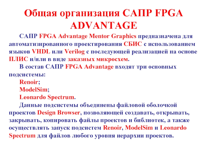 свою очередь, быть выполнено любым из выше перечисленных способов, что позволяет создавать иерархические описания любого уровня сложности (определяемого аппаратными ресурсами САПР).