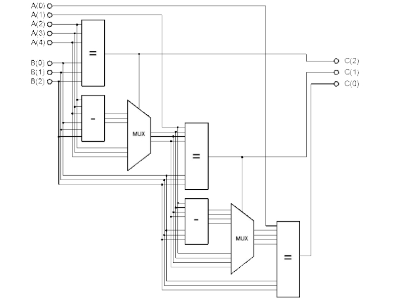 Например, два ресурсоёмких сумматора могут быть заменены на один сумматор и два мультиплексора, управляющих входами и выходами сумматора.