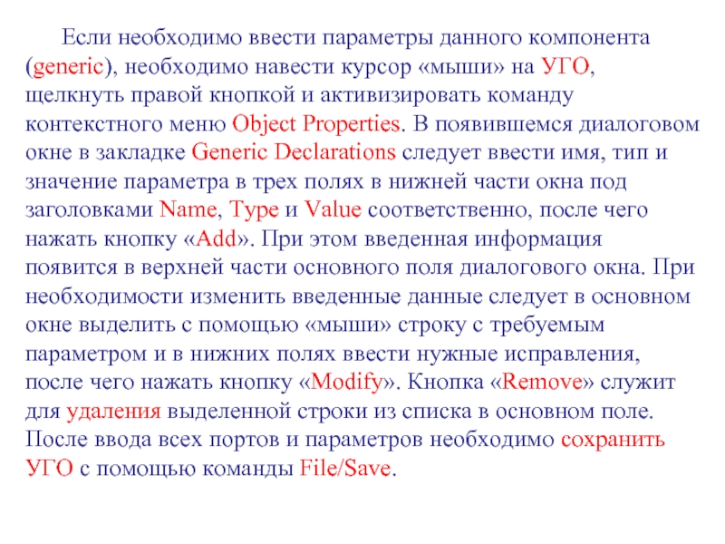 Ввод и редактирование параметров объектов проекта (блоков, компонентов, встроенных блоков и др.) можно осуществить, наведя курсор «мыши» на УГО объекта, щелкнув правой кнопкой и выбрав в контекстном меню команду Object Properties.