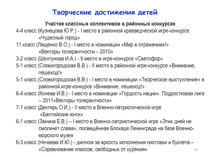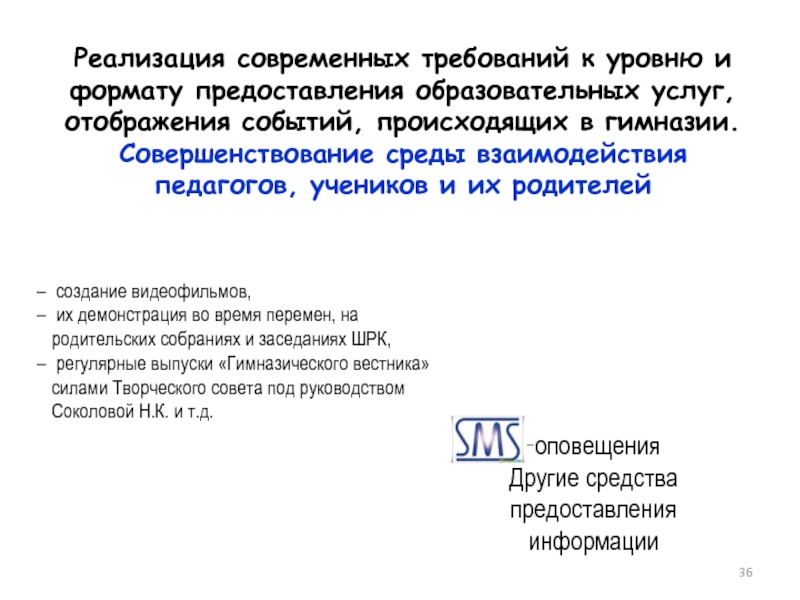 регулярные выпуски «Гимназического вестника» силами Творческого совета под руководством Соколовой Н.К. и т.д.