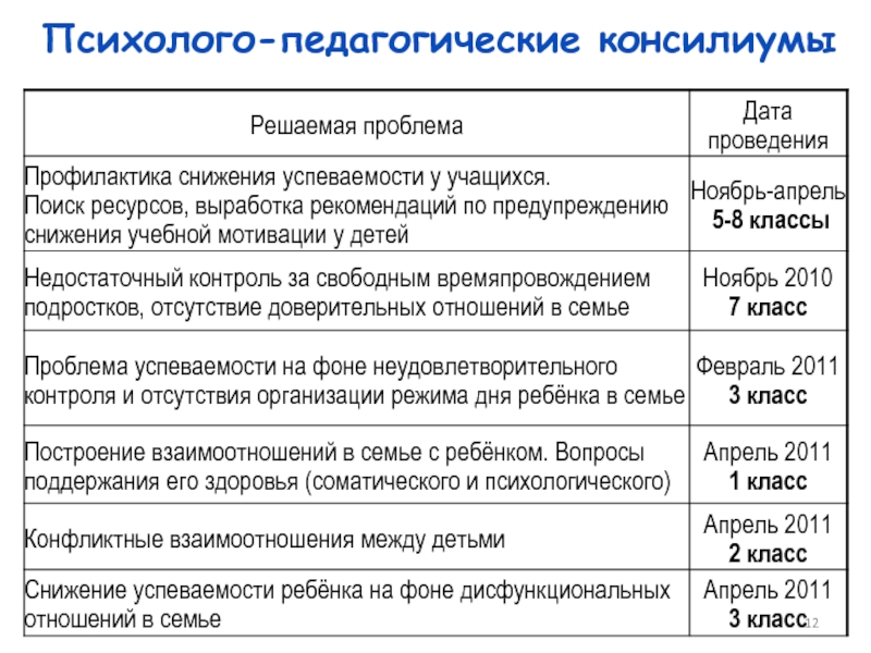 их демонстрация во время перемен, на родительских собраниях и заседаниях ШРК,