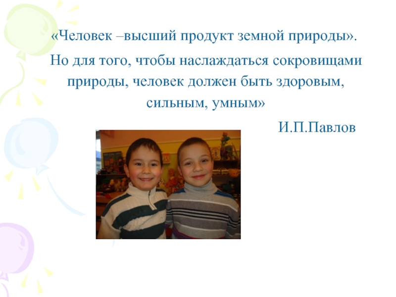 чтобы наслаждаться сокровищами природы, человек должен быть здоровым, сильным, умным»