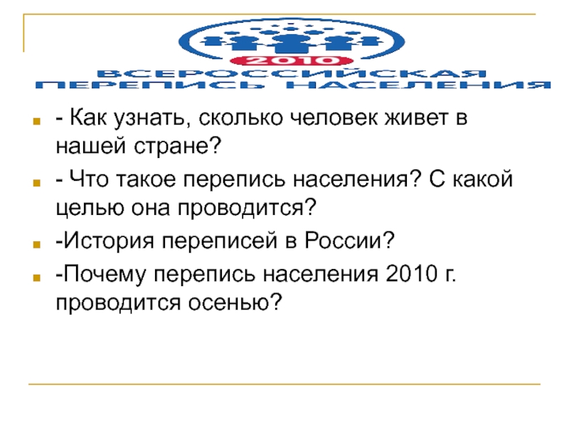 Основные вопросы по переписи, обозначены в ст.6 Федерального закона « О