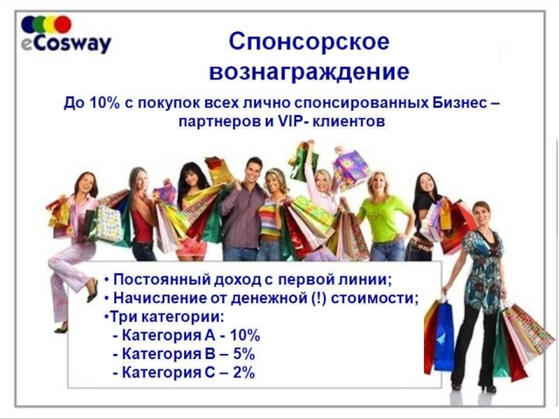 Баллы активности аккумулируются с личных покупок и покупок всех лично спонсированных VIP-клиентов без ограничений по количеству и срокам их использования (накапливаются и не сгорают)