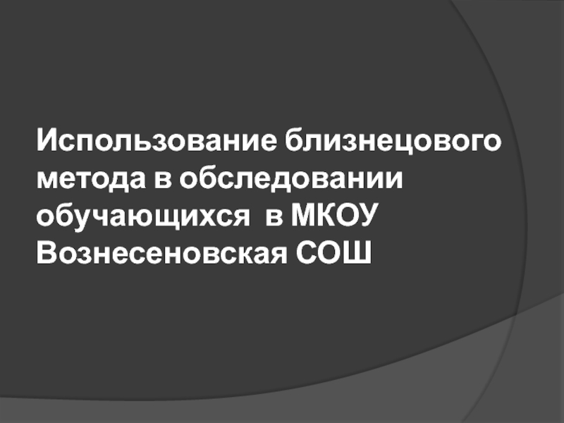 Слайд 19Использование близнецового метода в обследовании обучающихся в МКОУ Вознесеновская СОШ