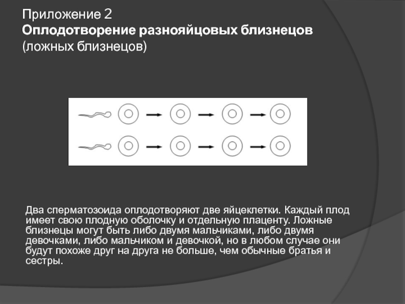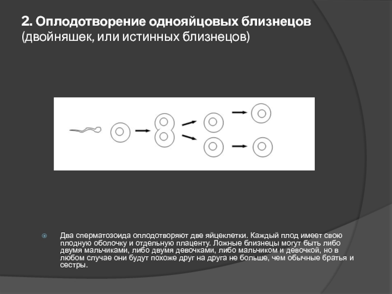 Слайд 402. Оплодотворение однояйцовых близнецов