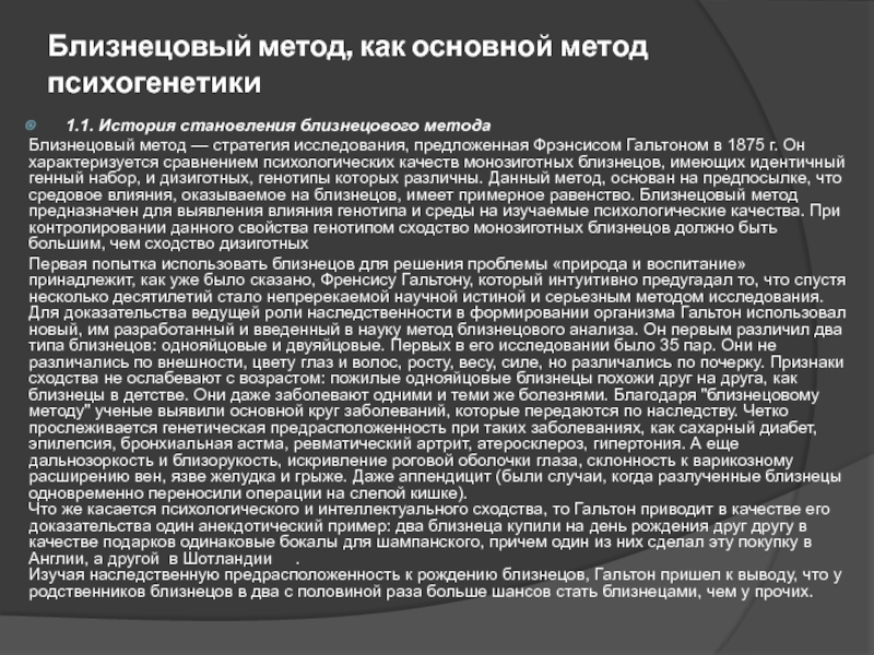 Слайд 8Близнецовый метод, как основной метод психогенетики